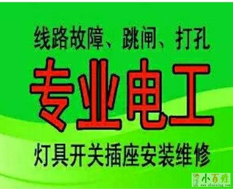1、维修电路:维修电源短路、线路断电、线路接线,从新走线,旧线换新线,开关.插座安装维修,开关控不了灯,插座没电,安装新插座.空调等大功率电器专用插座,或专用空气开关x~b~a~i~x~i~n~g~c~o~m。空气开关,漏电保护器安装维修小~百~姓~网。内部电路跳闸,即连续性跳闸、偶然性跳闸、直接合不上闸和不明原因无电、家用电器漏电电人等问题cpL。2、灯具安装:LED灯,日光灯、吸顶灯、水晶灯、吊灯、壁灯、射灯、节能灯、浴霸、镜前灯、筒灯、外景灯、灯带等各种灯具