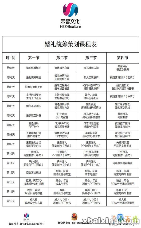 后期的发展打下夯实的基础。例如,婚礼主持人培训,商务主持人培训,婚礼策划师培训,演讲与
