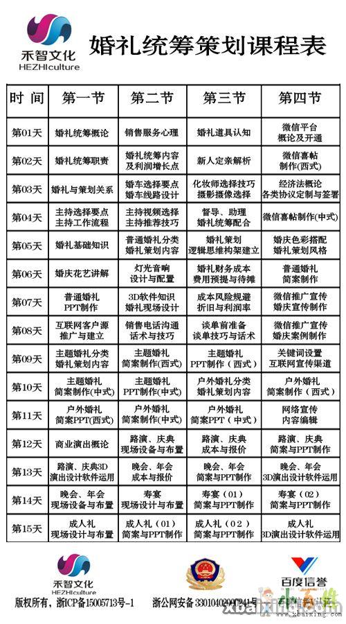 禾智文化设有10天的商务主持课程、7天的婚礼课程以及14天的综合课程,教授的内容包