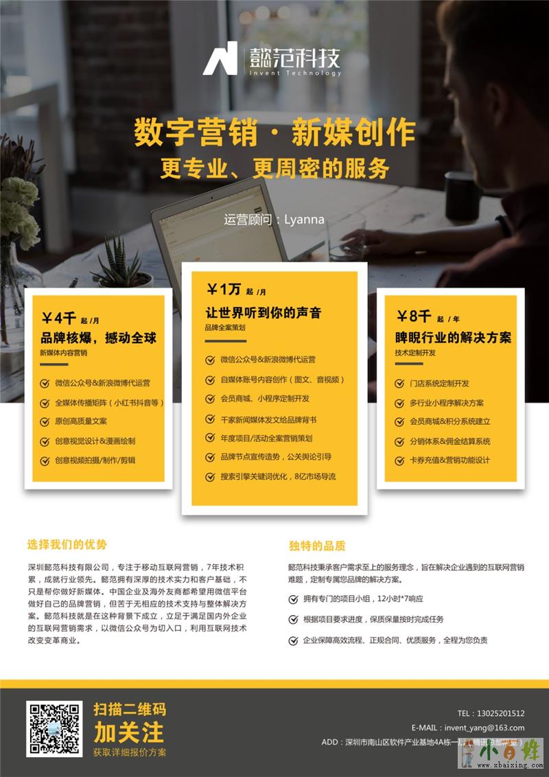 Z代年轻人的文化素养较高,包容并更具多元化的兴趣和涉猎,同时他们追求时尚并乐于创造流行文化。这就是懿范科技非常注重原创内容质感的原因,不管在哪个渠道营销策划,我们始终以用户体验为导向,让品牌产品得到更好的宣传推广,消费者进而产生信任并购买x+b+a+i+x+i+n+g+c+o+m。