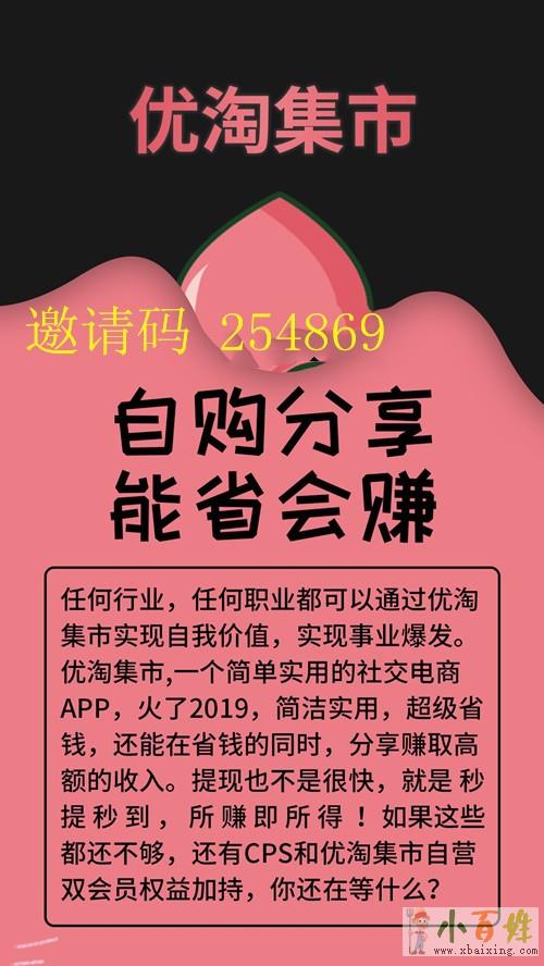 优淘集市可以为用户提供一个免费的优惠商城,用户可以把商品分享出去,分享给自己的朋友,自己的朋友购买时也可以领取优惠券,朋友购买省钱省力,而他们在购买后我们也能获得一部分返利佣金,二者都是互赢的局面原文www.xbaixing.com。并且优淘集市中的商品也不用担心,商品全都由各大网购平台(淘、京、品)中的网店提供,而且理论上来讲交易依然是通过购物平台进行,优淘集市只是一个桥梁,并不是购物场所,所以商品依然是原来的商品,只是价格通过优淘集市后会变得更实惠,普遍降低百分之三十左右。